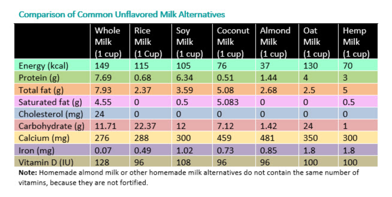 O leite de vaca é uma fonte muito importante de cálcio, proteína e vitamina D. E, de acordo com a Academia Americana de Pediatria, a única bebida vegetal que tem um perfil nutricional semelhante ao do leite de vaca é a bebida de soja.