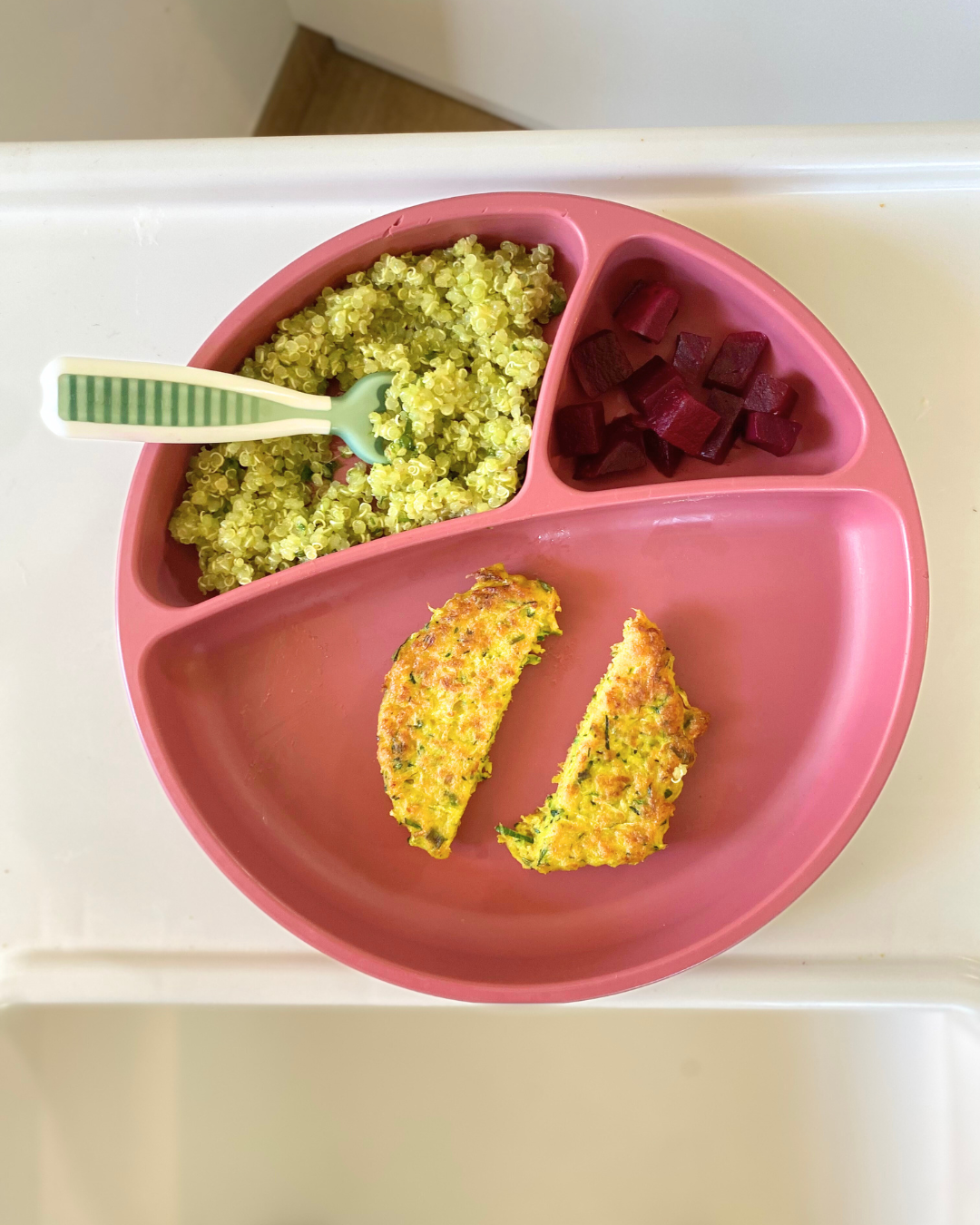 Nesta fase, caso ainda não o tenha feito, é importante introduzir textura à alimentação do bebé. Pode começar por esmagar a beterraba bem cozida em vez de triturar, e deixar alguns pedaços e oferecer como acompanhamento. Pode também cortar a beterraba bem cozida em pedaços pequenos e oferecer separadamente.