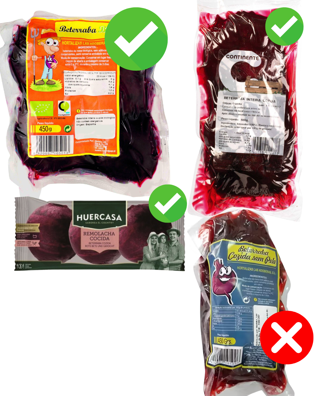 Em Portugal encontramos beterraba já cozida e embalada a vácuo em todos os supermercados, na zona dos hortícolas. São uma boa opção pela praticidade e a maior parte não têm nenhum aditivo, são apenas beterraba cozida. O único senão, é que depois de abertas têm uma validade muito curta. Uma dica para aumentar a validade é usar as sobras de beterraba para fazer picles caseiros.