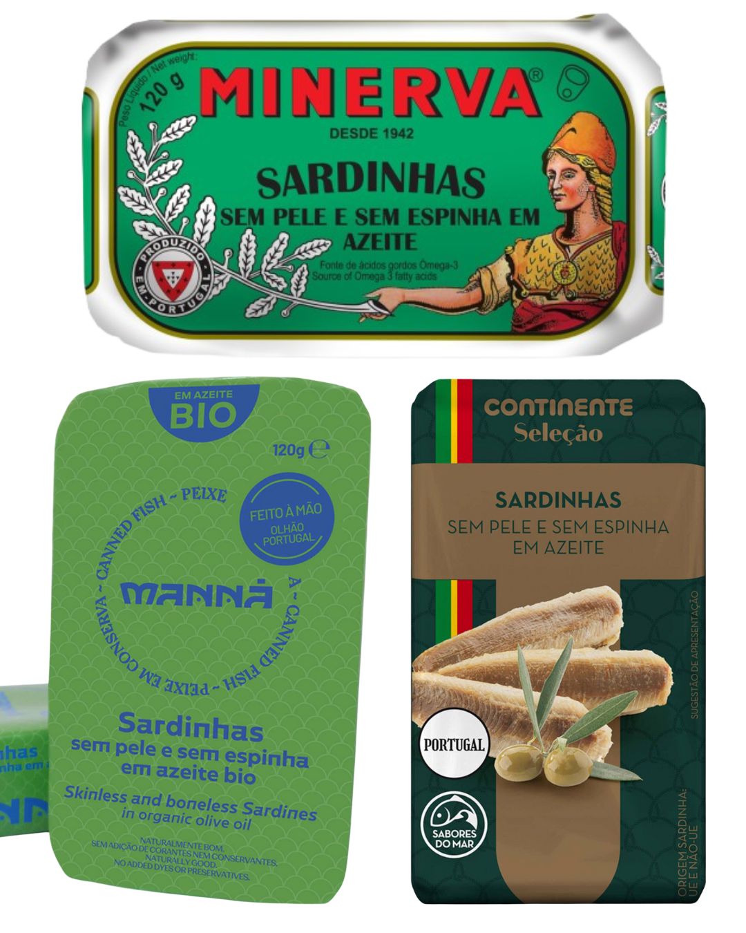As sardinhas da Minerva e do Continente Seleção têm 0,5g de sal, enquanto que a da Manná tem 0,76g.