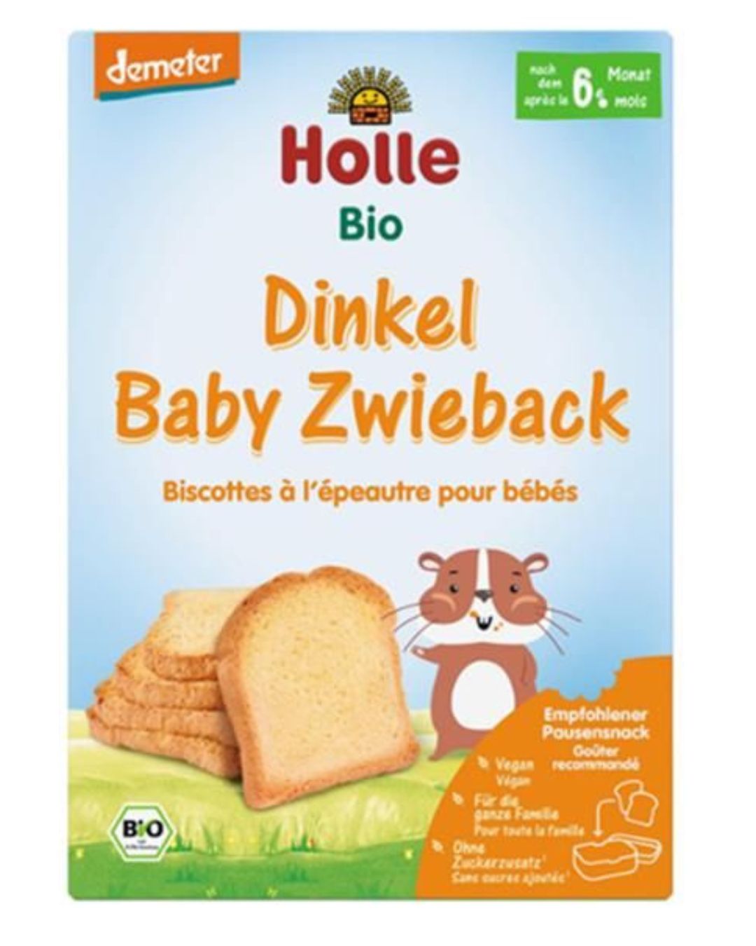 Ao contrário de todos as outras bolachas da lista, estas são feitas apenas com millet. A Holle é a minha marca favorita pela variedade de produtos. Os purés e papas de frutas são feitos com 100% fruta e têm combinações de sabores deliciosas. É preciso ter cuidado porque alguns dos produtos deles têm mel ou açúcar.
