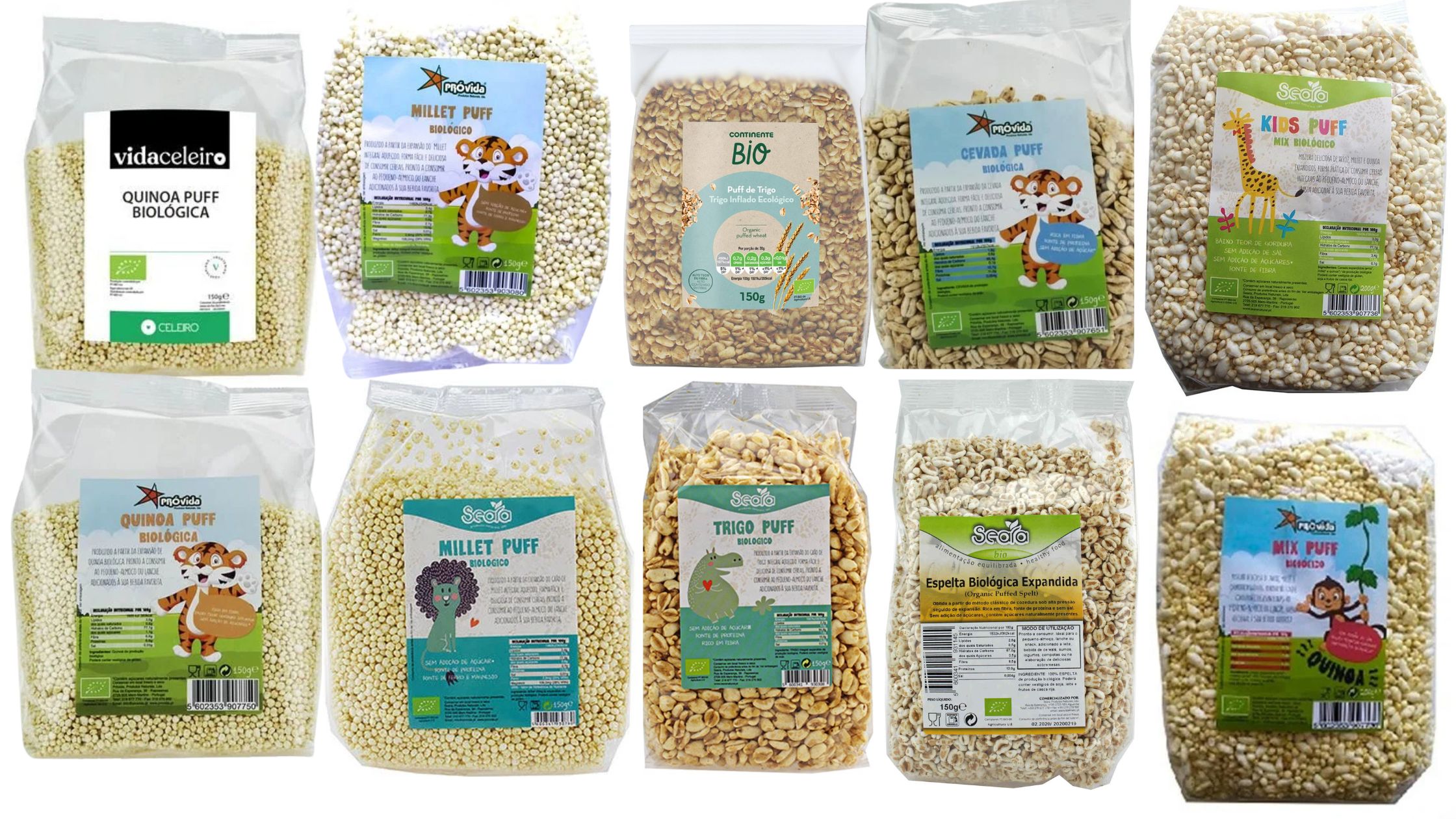 Atenção que há puffs que são adoçados e têm embalagens semelhantes. Na lista de ingredientes deve estar apenas um ingrediente: o próprio cereal.