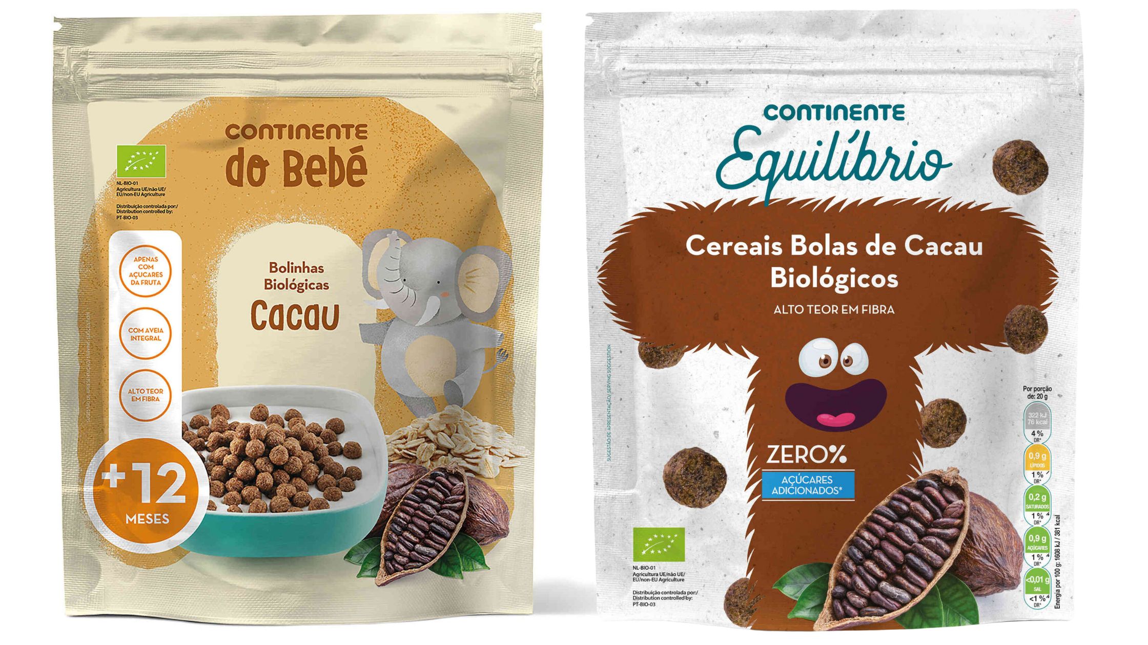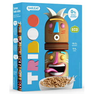 Estes cereais de pequeno-almoço são adoçados com tâmaras mas em quantidade bem pequena (2,9g de açúcar em 100g) e por isso recebem um A no nutriscore. Têm farinha de grão-de-bico farinha de lentilhas na sua composição. São também os nossos favoritos! A única desvantagem é não serem enriquecidos. Podem comprar online, no El Corte Inglês, Wells e Auchan.
