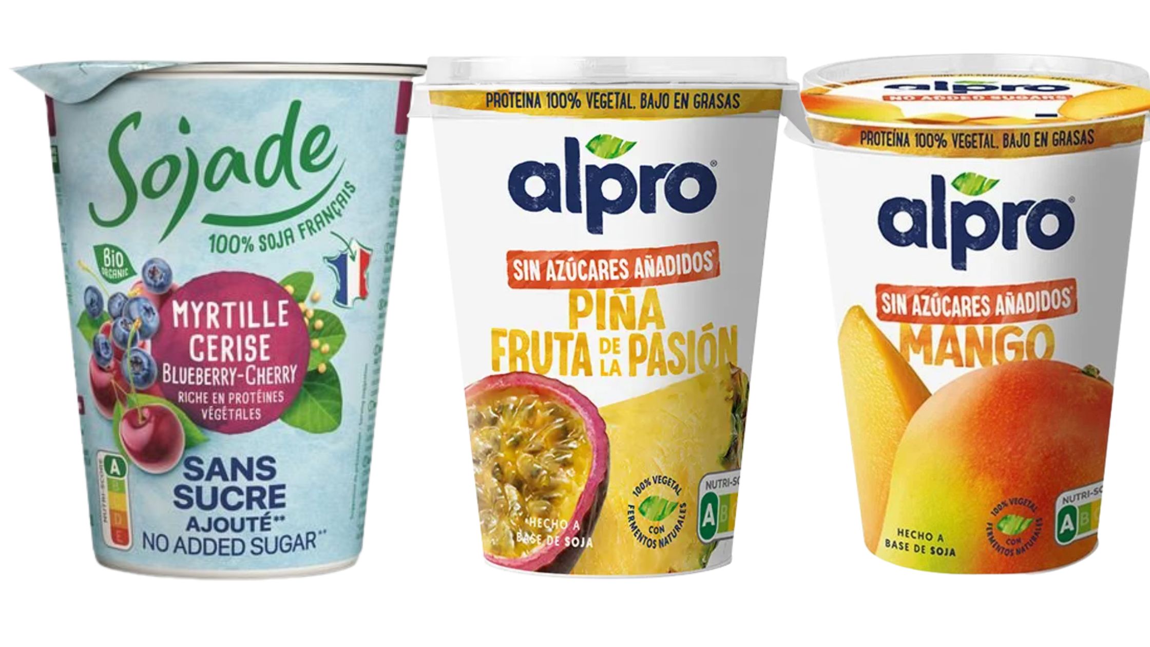 Até à data, e que eu tenha conhecimento, só existem duas opções de iogurte com fruta sem açúcar, mas são ambos iogurtes de soja. São os iogurtes sem açúcar adicionada das marcas Alpro e Sojade. Ambos são adoçados apenas com fruta, e têm quantidades baixas de açúcar. O da Soja de cereja e o da Alrpo de abacaxi têm, inclusivamente, menos de 5 gramas de açúcar por 100 gramas de produto.