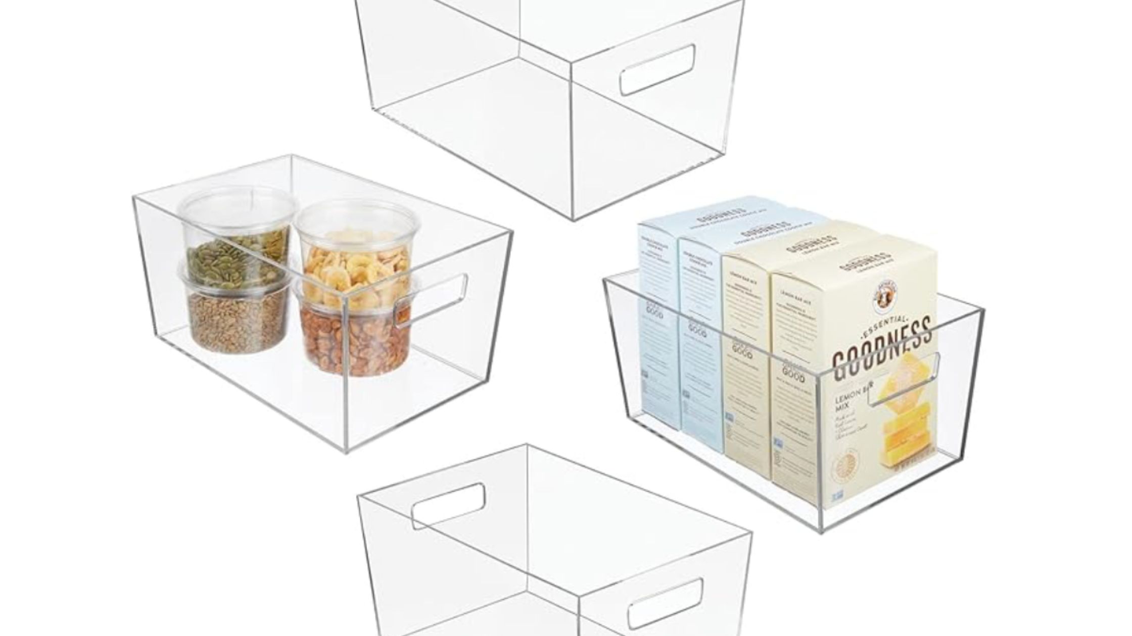 As caixas organizadoras transparentes e empilháveis são uma solução eficiente para categorizar alimentos. Algumas destas caixas incluem cestos internos que ajudam a: