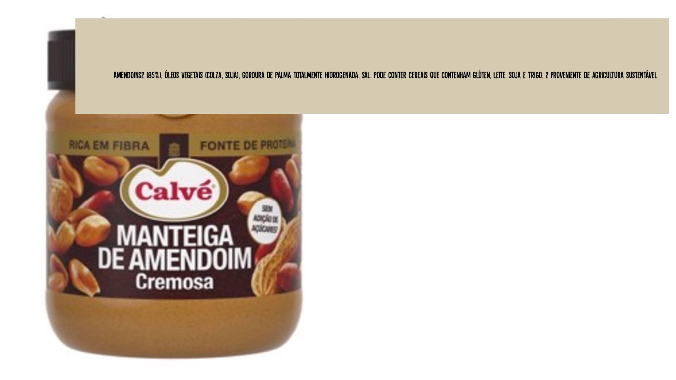 Deve ter consistência cremosa (smooth). Manteiga de amendoim com pedaços representa risco de engasgo para bebés e crianças.