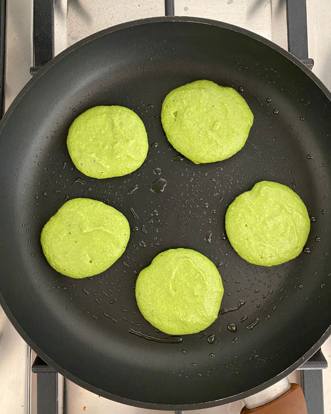 Grelhar as panquecas numa frigideira em lume médio, mais ou menos 4-6 minutos de cada lado.