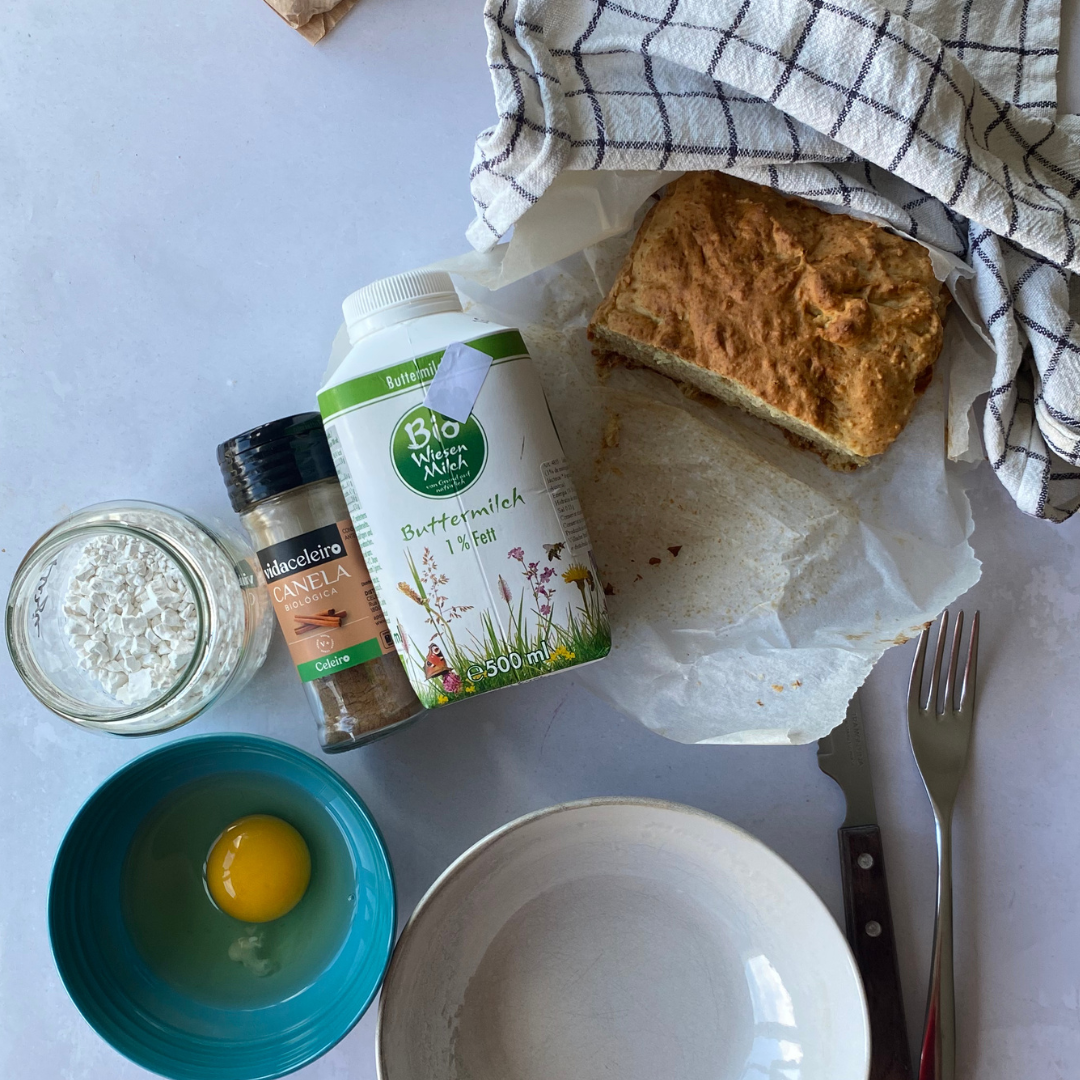 Opcional, para adultos e crianças mais velhas: Coloque uma mistura de canela e açúcar por xilitol num prato fundo e passe as rabanadas nessa mistura assim que as tirar da frigideira!